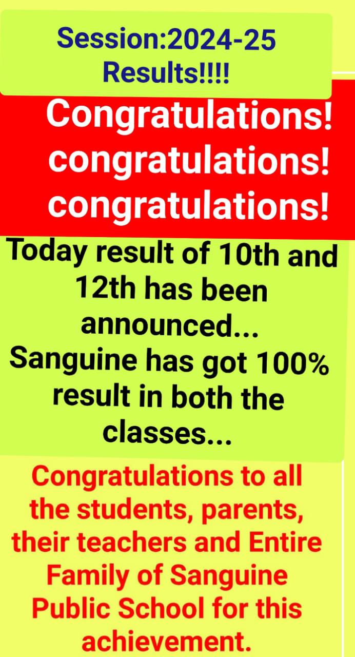 Academic achievements- The Sanguine School has very high expectations for all Its pupils. With good teaching, encouragement and support every child can realize his or her full potential.